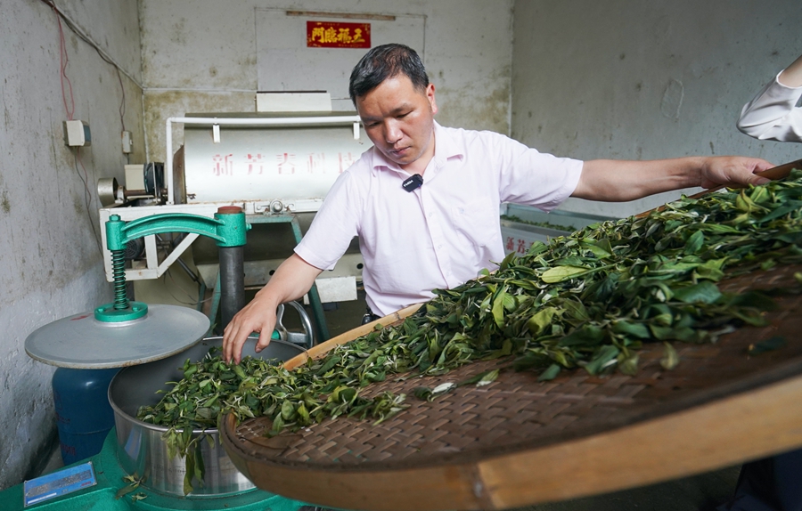 龍門縣南昆山毛茶制作技藝非遺項目傳承人張偉輝近期獲制茶傳承人表彰;葜萑請笥浾邷搴 攝
