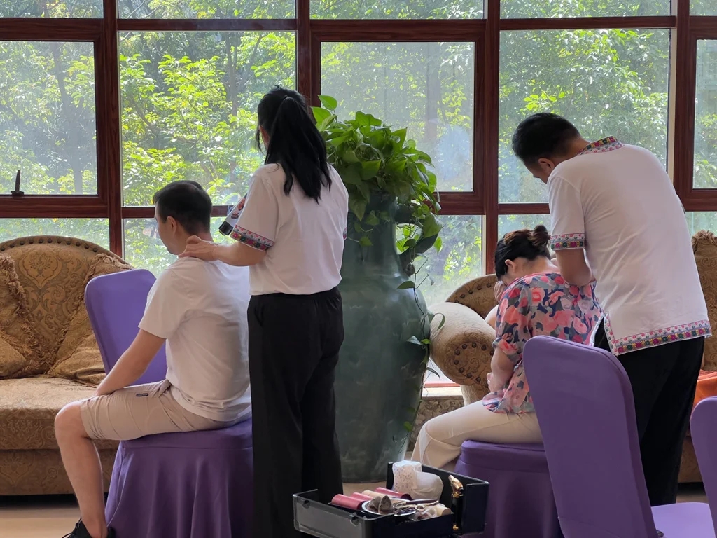 游客在活動現場體驗“中醫(yī)-溫泉-艾灸”模式帶來的康養(yǎng)效果。