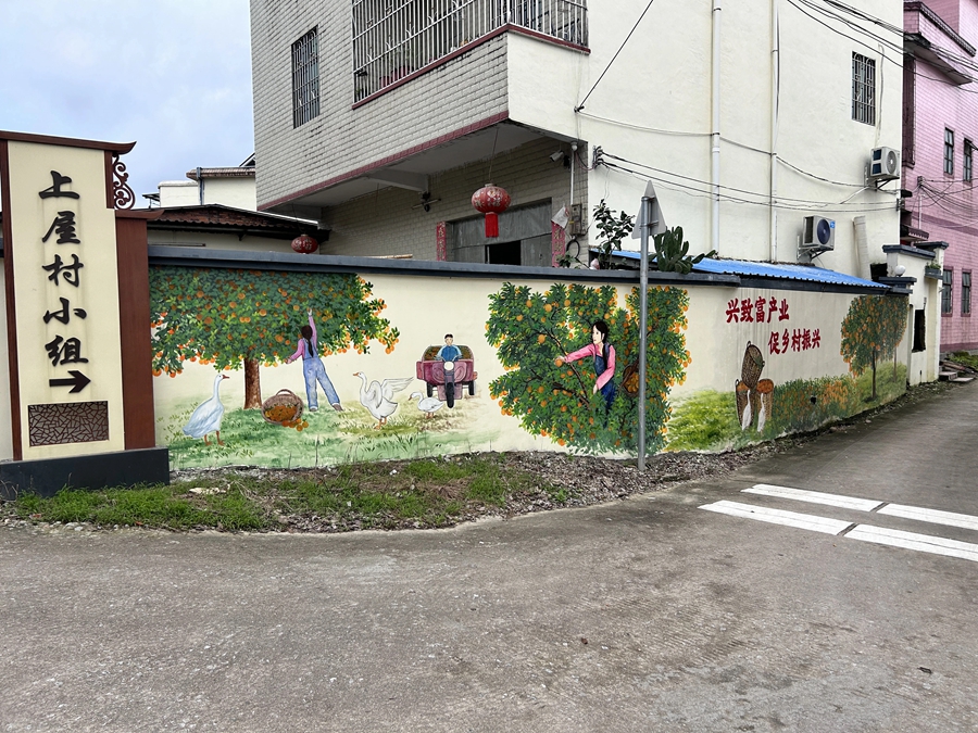 “我們想通過墻體彩繪畫這種形式扮靚家園,傳遞文明!彼膰濉皟晌眱(chǔ)備干部黃嬋儀介紹,四圍村墻體彩繪畫項(xiàng)目屬于“百千萬工程”中的一個(gè)項(xiàng)目。在提升村容村貌的同時(shí),希望墻體彩繪畫能夠成為當(dāng)?shù)貏?chuàng)意旅游的“引流點(diǎn)”,吸引旅客到四圍村游玩、拍照,從而帶動(dòng)鄉(xiāng)村旅游的發(fā)展,增加四圍村村民的經(jīng)濟(jì)收入。