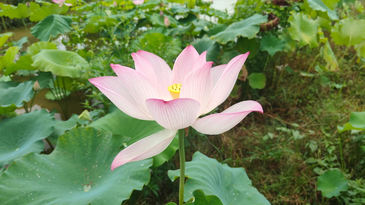 日前,記者來到紅星村“瑤鄉(xiāng)田園”荷花基地看到,荷塘里荷葉重疊,荷花嬌艷欲滴,偶有水珠掛在花瓣上、荷葉上,像晶瑩的珍珠。微風(fēng)拂過,碧波蕩漾,荷花隨風(fēng)搖曳,一幅美麗的田園畫卷呈現(xiàn)眼前,讓人不禁頻頻按下快門。