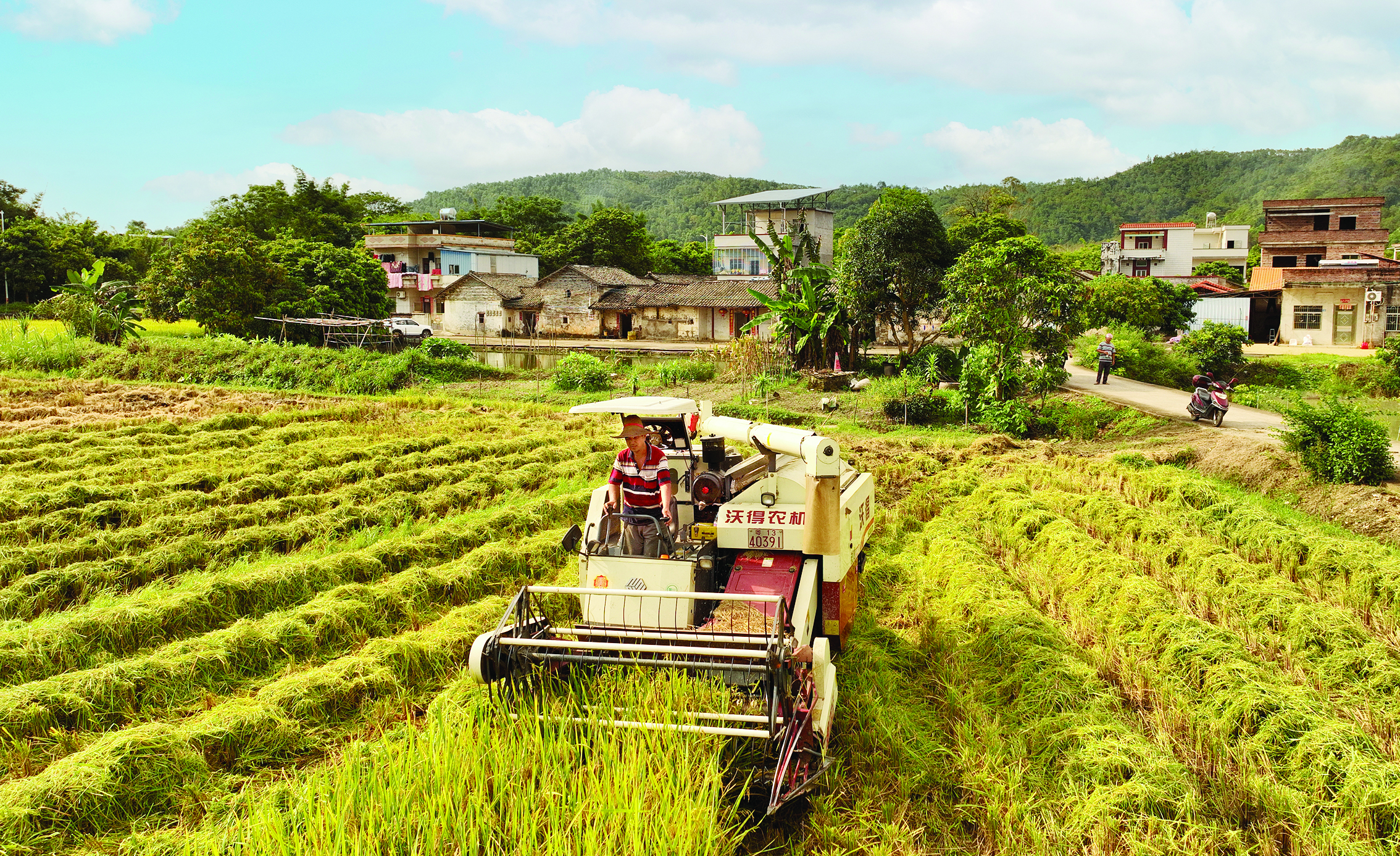 收割機(jī)在收割富硒水稻。惠州日?qǐng)?bào)記者鐘暢新 攝