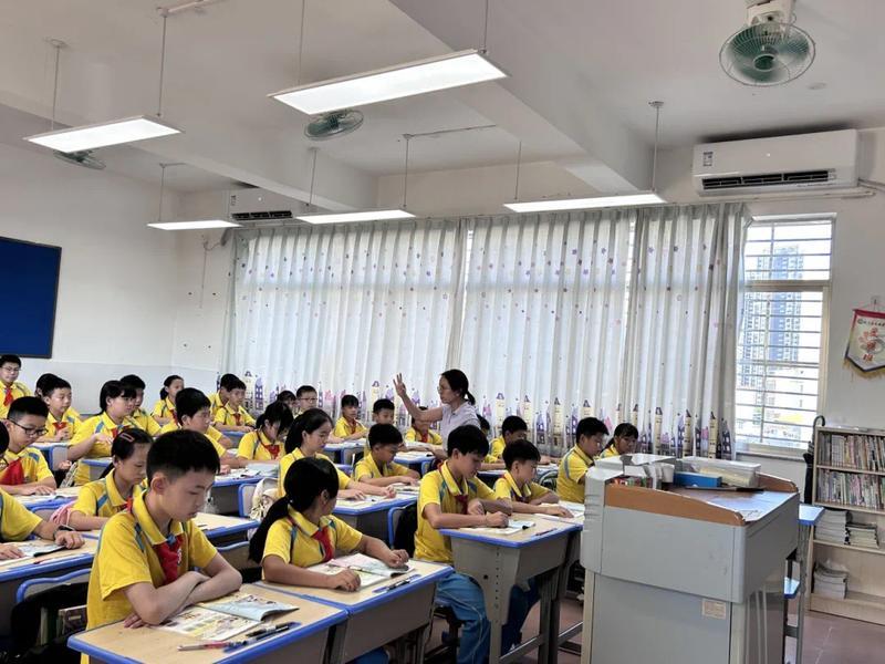 學(xué)生在涼爽的空調(diào)教室內(nèi)上課;葜萑請(bào)記者黃宇翔 通訊員龍融心 攝
