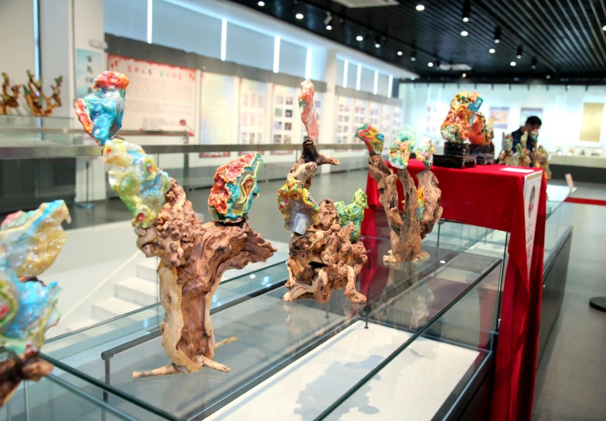 最為熱鬧的當(dāng)屬奇石藝術(shù)作品展區(qū)。兩百多件千姿百態(tài)的奇石錯落陳列,令人嘆為觀止。觀眾們穿梭其間,不時發(fā)出陣陣驚呼。他們有的在形似峻嶺的巨石前感慨自然造物之神奇;有的則圍聚在紋路酷似山水畫卷的雅石旁,品評其韻味。