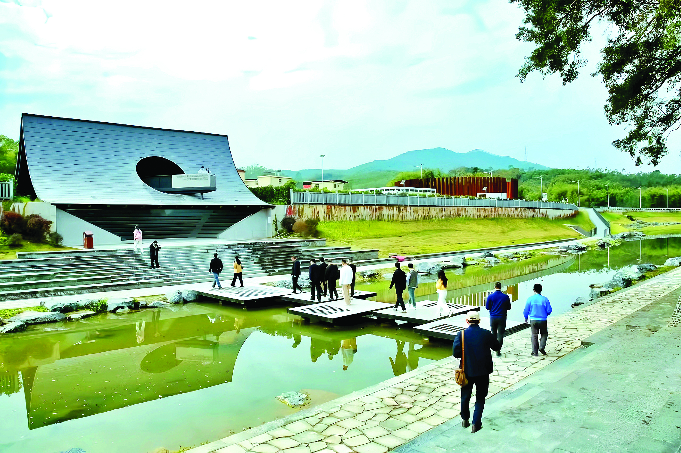 驛站不僅是休憩節(jié)點(diǎn),更是文旅融合的展示窗口,古村活化與藝術(shù)賦能讓鄉(xiāng)村文旅更具深度。龍門縣實(shí)施建筑藝術(shù)計(jì)劃,啟動“四村一廠一線”示范項(xiàng)目,吸引全球頂尖設(shè)計(jì)團(tuán)隊(duì)參與鄉(xiāng)村建設(shè),讓空心村變身藝術(shù)地標(biāo)。其中,龍華鎮(zhèn)長灘村傳統(tǒng)村落活化項(xiàng)目作為“百千萬工程”重點(diǎn)項(xiàng)目,采用“企業(yè)+村集體+村民”共富模式,整合閑置房,修繕古祠堂及歷史建筑,植入溫泉民宿、農(nóng)業(yè)研學(xué)等新業(yè)態(tài),讓“沉睡”的古村落煥發(fā)新生;麻榨鎮(zhèn)中心村“古榕文學(xué)村”引進(jìn)文學(xué)咖啡、糧倉書局等業(yè)態(tài),為鄉(xiāng)村注入文藝活力,實(shí)現(xiàn)藝術(shù)賦能與產(chǎn)業(yè)增收雙贏。“以前村道狹窄、人氣冷清,如今依托218最美旅游公路,文學(xué)主題空間不斷涌現(xiàn),村容村貌煥然一新,村民的日子也越來越有奔頭!敝行拇妩h總支書記、村委會主任張奇峰笑著說。