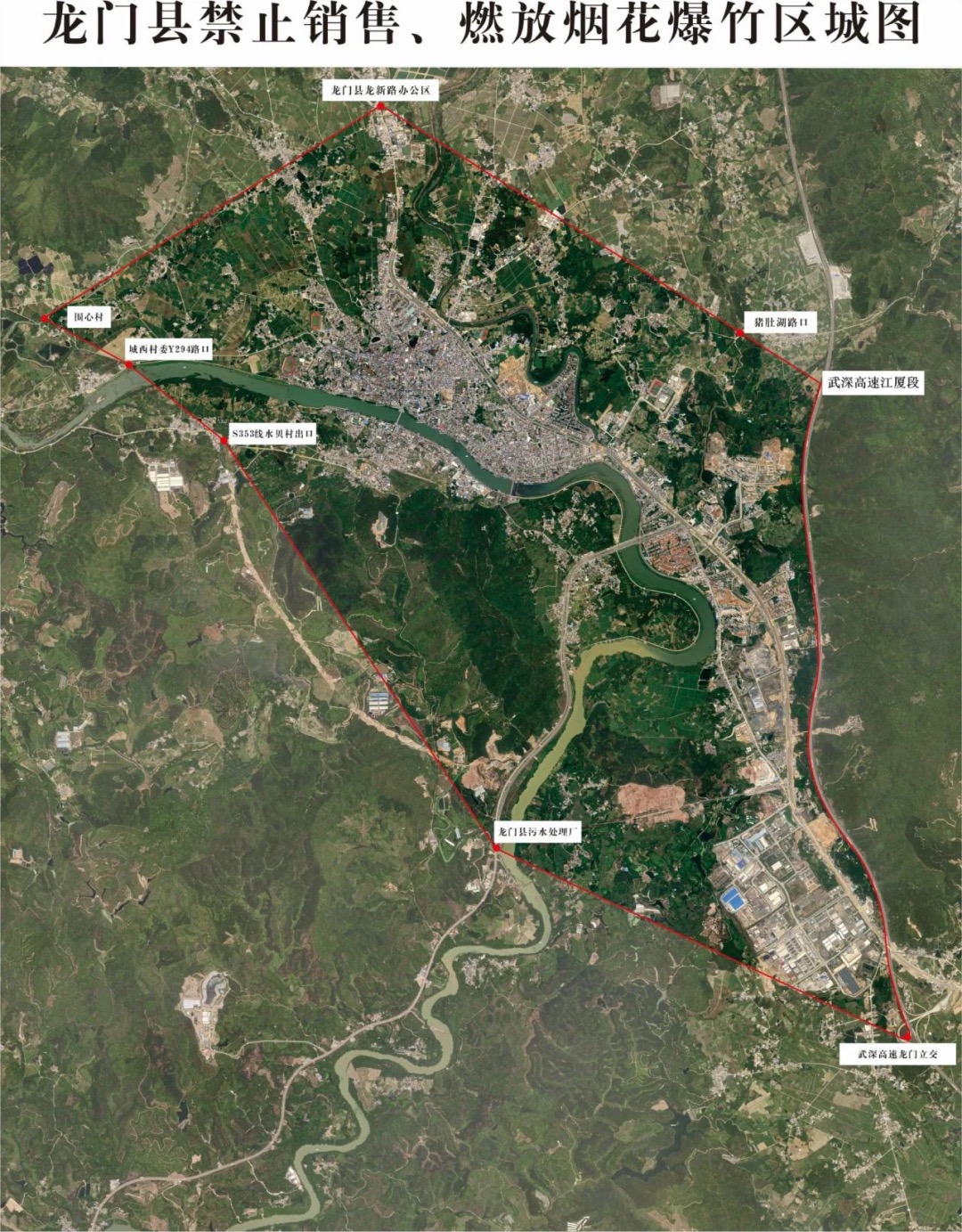為有效防范因煙花爆竹引發(fā)的火災(zāi)、人身傷害事故,減少大氣污染,切實(shí)保障人民群眾生命財(cái)產(chǎn)安全和身體健康,龍門(mén)明確劃定縣城及周邊部分區(qū)域?yàn)闊熁ū窠劢艆^(qū)(具體范圍詳見(jiàn)下圖),嚴(yán)禁任何單位或個(gè)人在該區(qū)域內(nèi)銷售、儲(chǔ)存、燃放煙花爆竹。