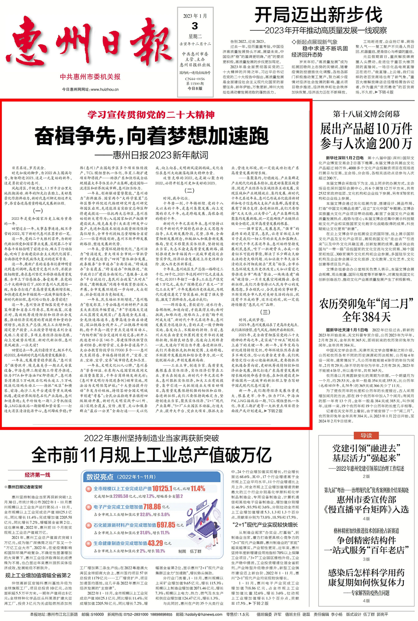 攻堅克難的2022,也是凝心聚力的2022,必將開創(chuàng)惠州更加美好的2023。