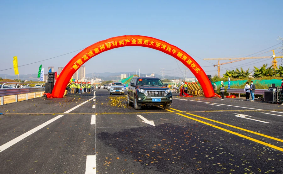 惠霞高速(惠州市1號公路)惠州新材料產(chǎn)業(yè)園至大亞灣段半幅正式貫通。