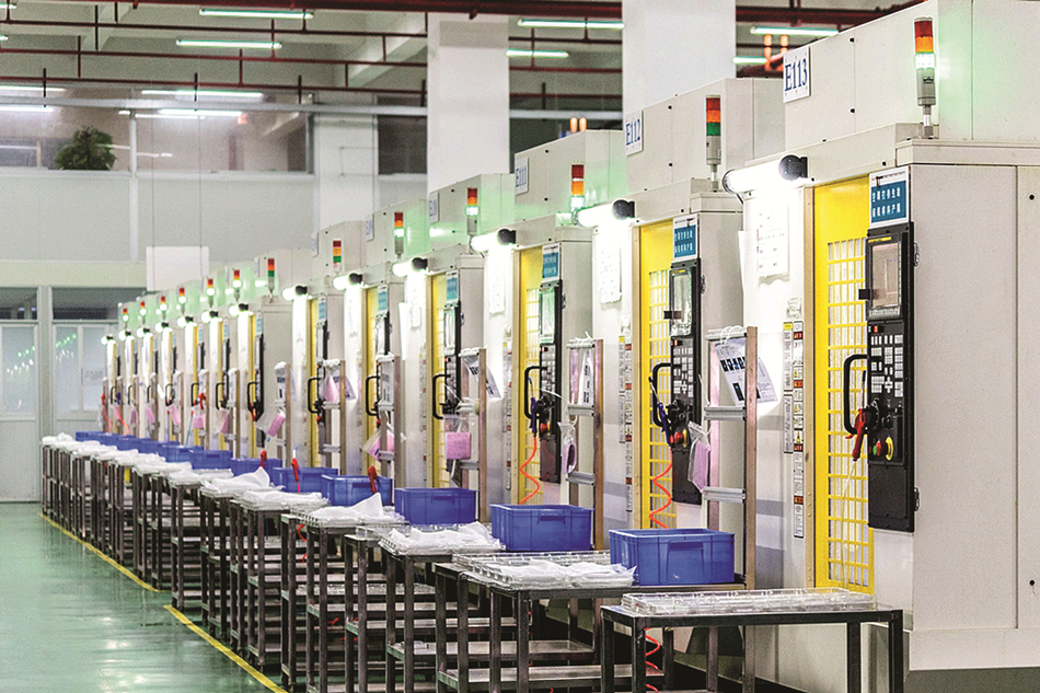 高度自動(dòng)化是格林精密技術(shù)優(yōu)勢(shì)的具體體現(xiàn)。在生產(chǎn)管理方面,格林精密長(zhǎng)期實(shí)施精益生產(chǎn)管理,擁有國(guó)際先進(jìn)的精密模具制造設(shè)備、全伺服電動(dòng)精密注塑機(jī)、CNC鉆銑中心、五金沖壓和鍛壓設(shè)備、鋁合金壓鑄設(shè)備,以及結(jié)構(gòu)件注塑自動(dòng)化生產(chǎn)線、結(jié)構(gòu)件表面處理自動(dòng)化生產(chǎn)線、結(jié)構(gòu)件包布自動(dòng)化生產(chǎn)線、結(jié)構(gòu)件裝配自動(dòng)化生產(chǎn)線。公司實(shí)施移動(dòng)模塊式自動(dòng)化生產(chǎn)模式,具備快速響應(yīng)客戶需求的柔性化生產(chǎn)管理能力,可助力客戶新產(chǎn)品快速上市,搶占市場(chǎng)先機(jī)。