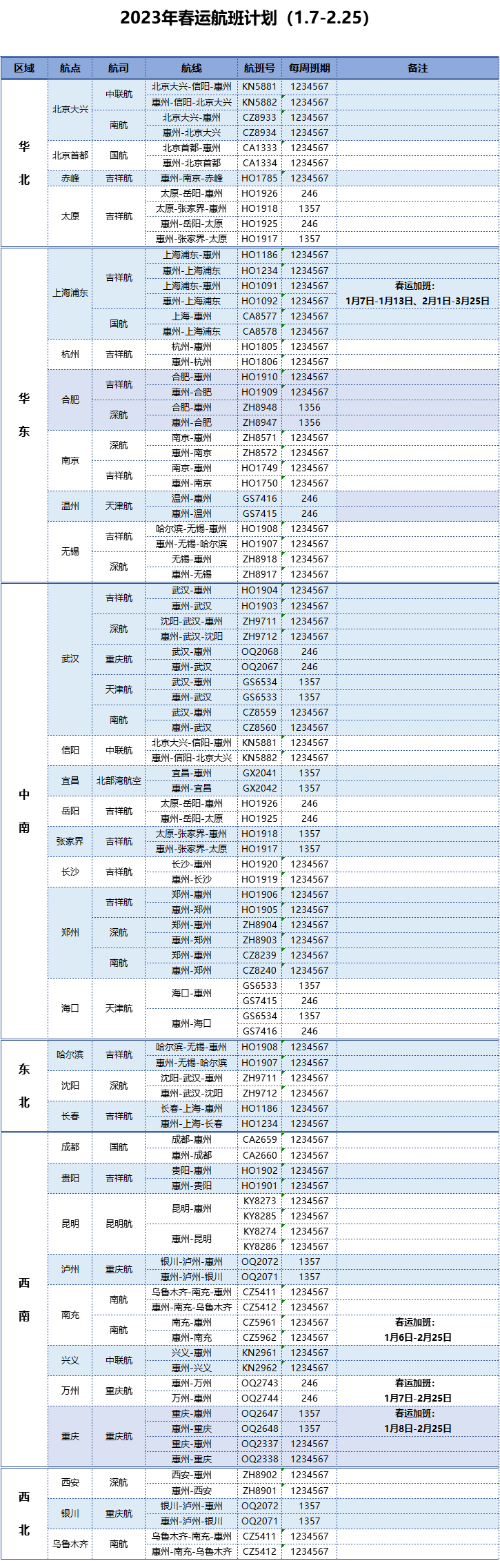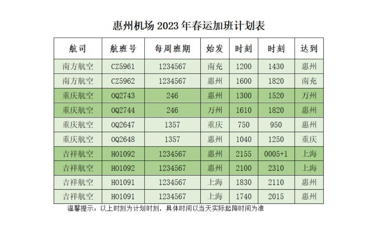 2023年春運將于1月7日正式拉開帷幕,年關(guān)將至,為滿足旅客出行需求,惠州機場春運期間新增和加密上海、南充、萬州航班,為廣大旅客春節(jié)期間返鄉(xiāng)、出游提供更多選擇。目前,各條航線已陸續(xù)開艙售票,票價低至三折。