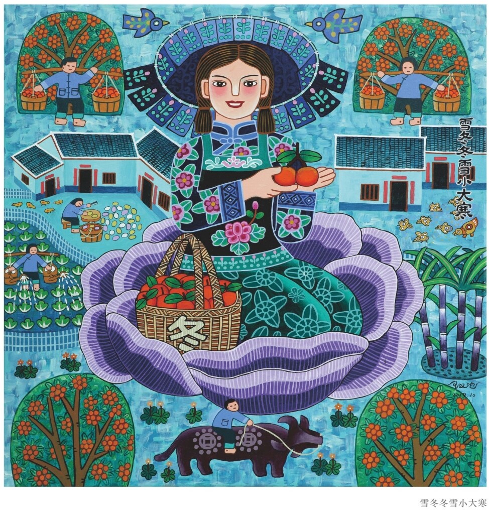二十四節(jié)氣小寒。龍門農(nóng)民畫畫家王漢池《客家山歌農(nóng)民畫組》之節(jié)氣歌 ,冬季節(jié)氣。