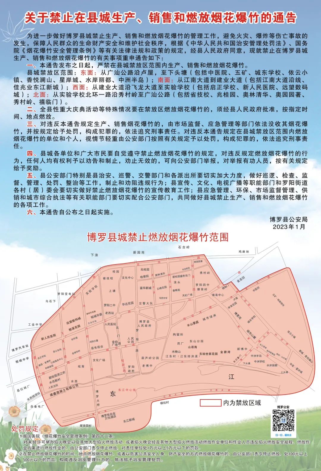 博羅縣公安局發(fā)布了《關于禁止在縣城生產、銷售和燃放煙花爆竹的通告》,通告明確了縣城禁燃區(qū)范圍、以及違反規(guī)定,將會受到的處罰,大家一起來看看。