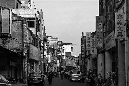 幾度興衰沉浮,幾許唏噓感慨。在水東街上游走,佇立于古舊的騎樓前,能感受到它的滄桑。每一次去都會(huì)有新的認(rèn)識(shí),水東街正是因?yàn)轵T樓的存在,才變得意韻深長。一間茶館中,幾位老人正在屋內(nèi)悠閑地喝茶聊天,安詳怡然,仿佛一群大隱于市井的隱者,偶爾有三三兩兩衣著時(shí)髦的行人走過來,倒也有一種歷史與現(xiàn)實(shí)交替的感覺。
