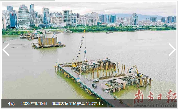 ●8月9日,鵝城大橋主橋樁基全部完工。