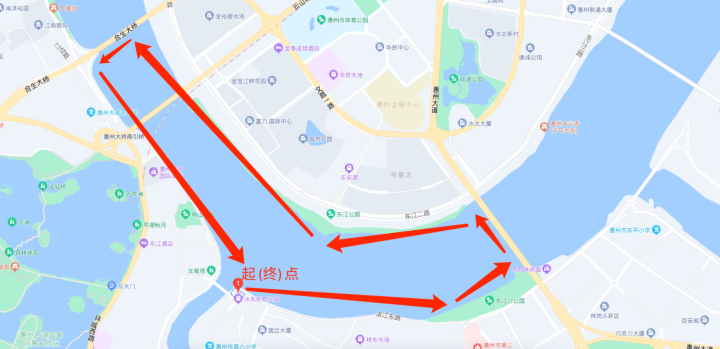 “東江游”復(fù)航后航線規(guī)劃為:合江樓碼頭——水東街——東江沙公園——東江大橋折返——東江公園——合生大橋折返——合江樓碼頭,航程約1小時(shí)。東江游票價(jià)48元/人,年初一開始每天10:00、15:00、19:30開航,夜間將視游客情況另外加開航班。