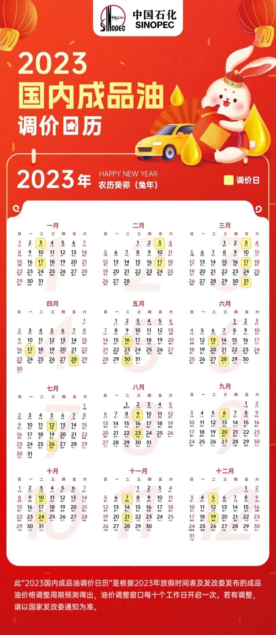 2023年的油價調(diào)整時間表出爐