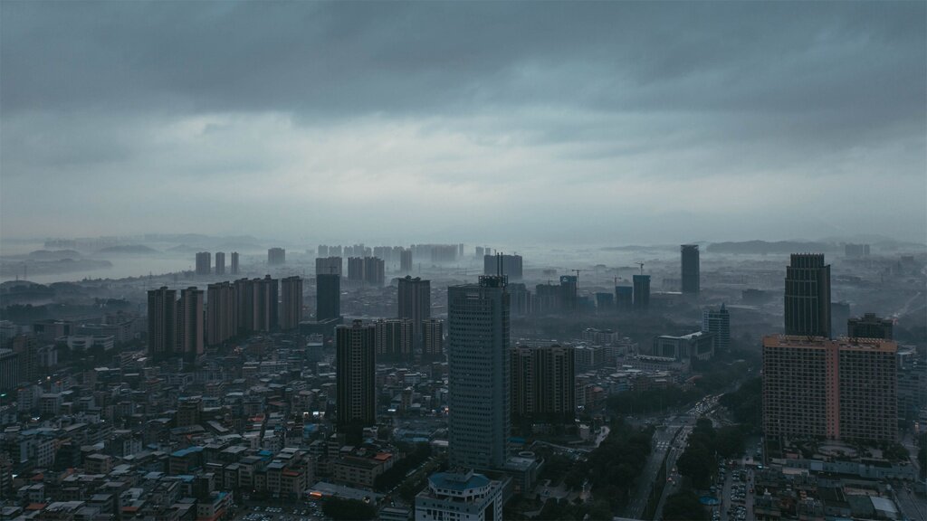 2022年3月25日,“回南天“,惠州市區(qū)被雨霧籠罩。
