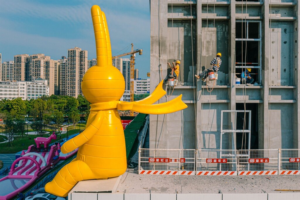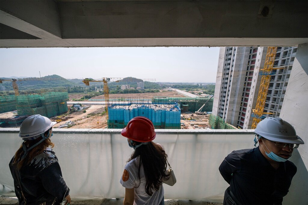 2022年4月8日,惠州馬安一處工地舉行復(fù)工復(fù)產(chǎn)儀式,業(yè)主在陽臺上觀摩。