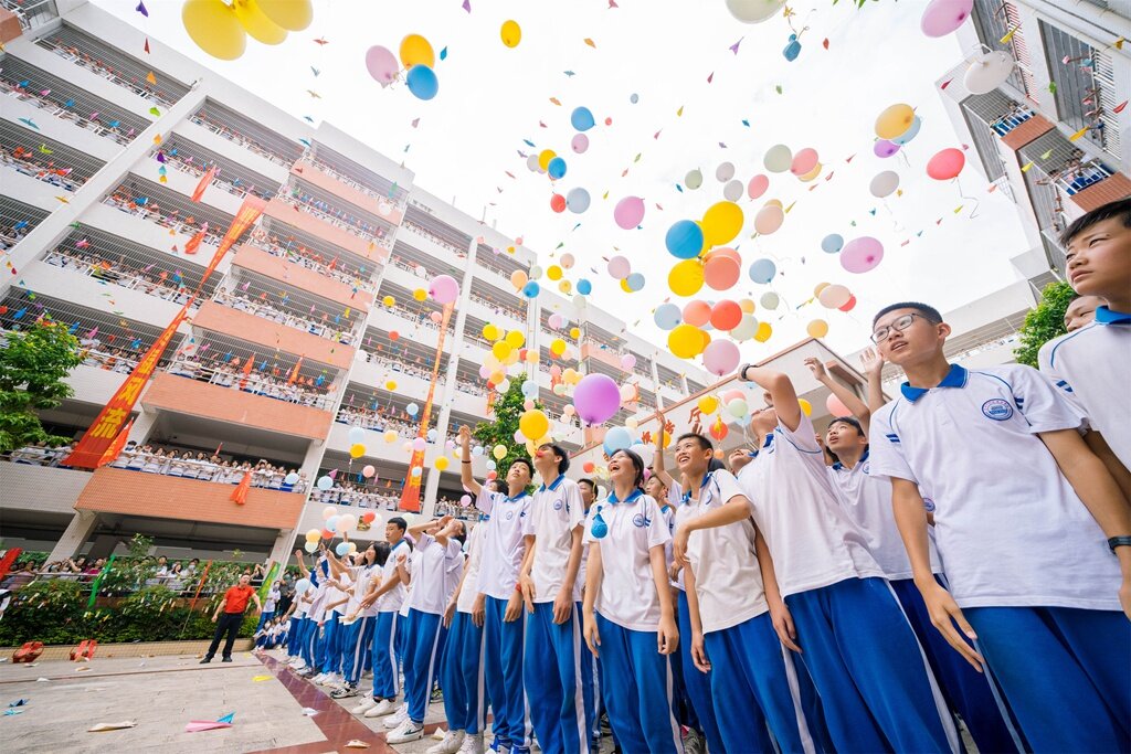 2022年6月2日,2022高考前夕,惠州綜合高中的同學(xué)們放飛氣球為考試祈福。