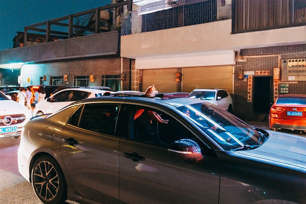 2022年9月10日,中秋的夜晚路遇堵車,一只小狗伸出天窗張望