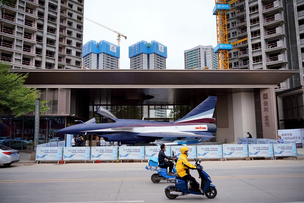 2022年11月5日,博羅縣園洲鎮(zhèn)一處樓盤,門口展示出”殲十”戰(zhàn)機模型促銷。