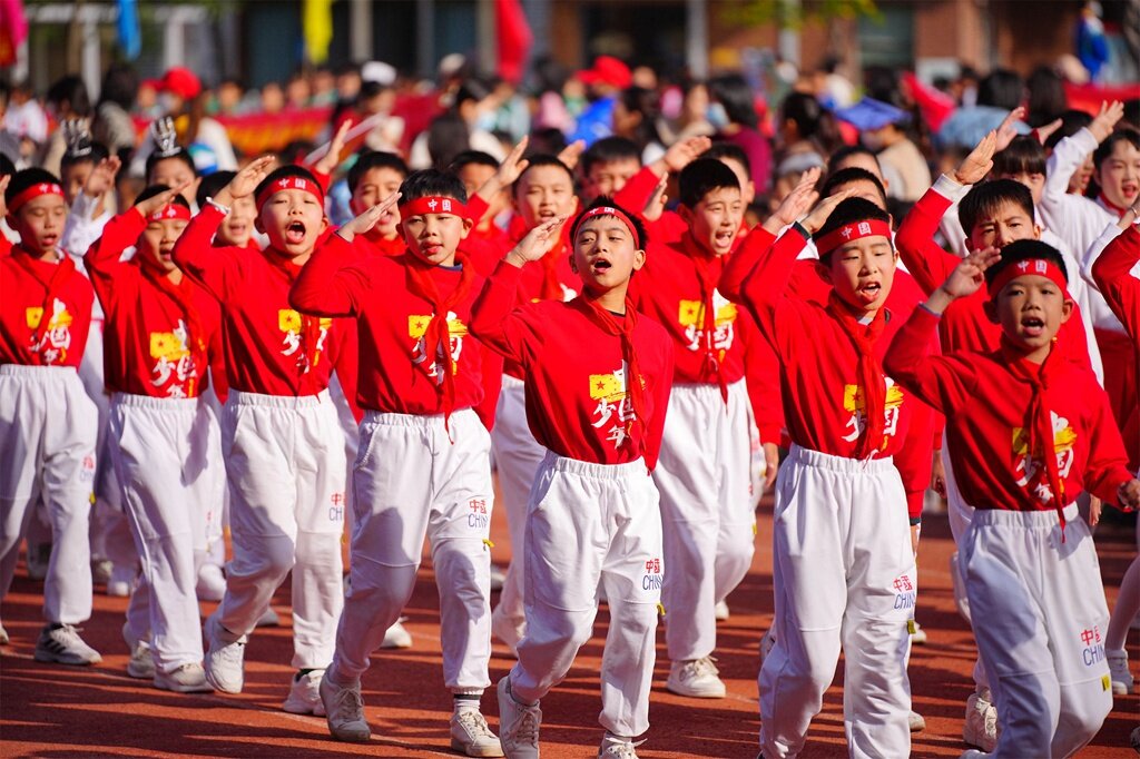 2022年12月9日,華南師范大學(xué)附屬惠陽學(xué)校舉行校運會,開幕式上隨處可見濃烈的中國元素。
