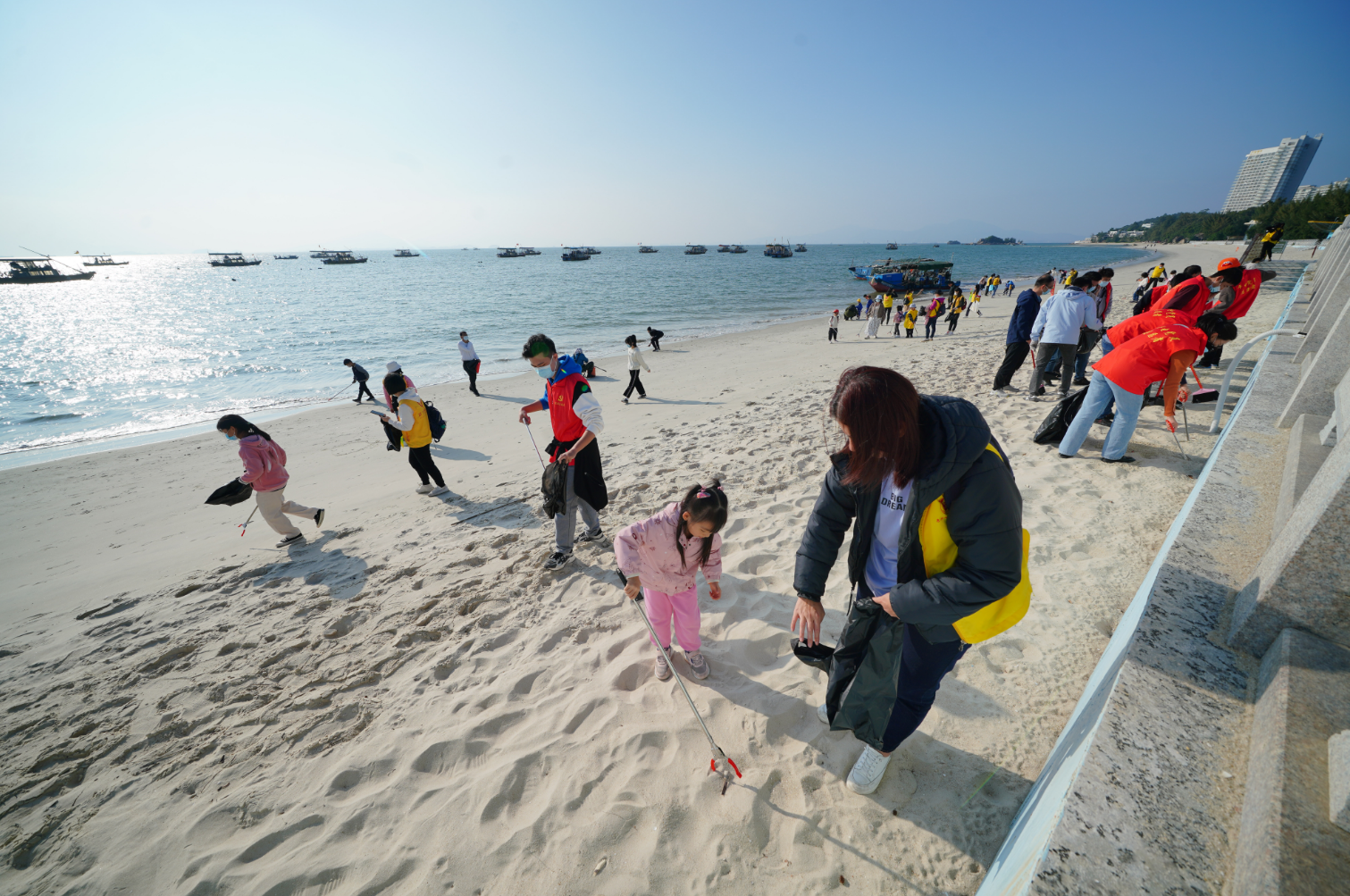 2022年12月10日,惠東巽寮灣海灘,參加“海好有你”公益揀跑活動的市民,正在清理沙灘上的垃圾。