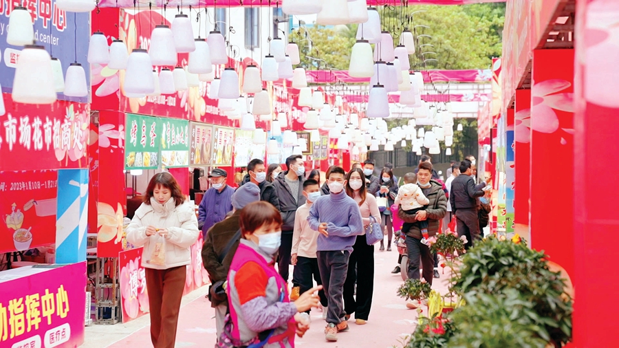 博羅縣羅陽(yáng)街道迎春花市人流如織。