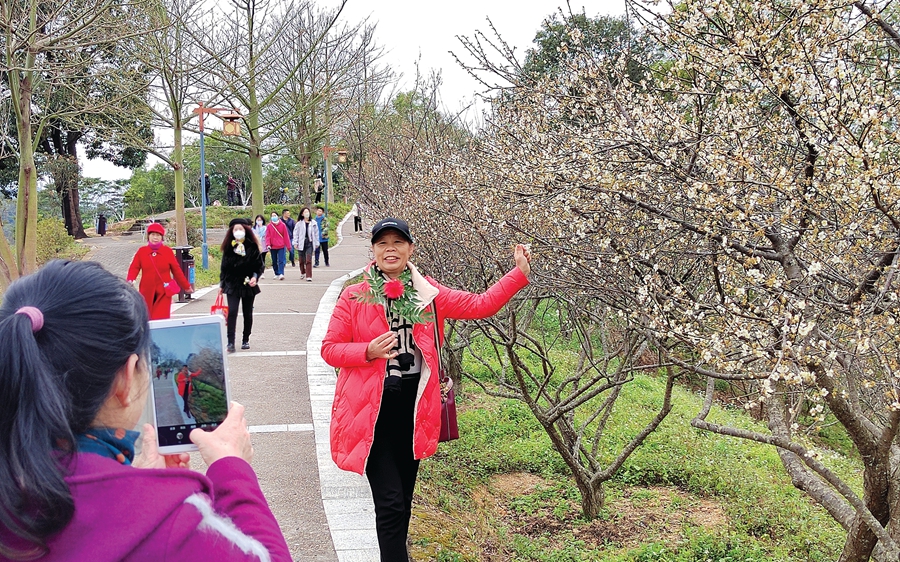 寒冬臘月梅花開,報(bào)春傳喜吉祥來。近日,惠州西湖紅花湖景區(qū)梅花怒放,一團(tuán)團(tuán)一簇簇,一股股暗香在空氣中彌漫開來,令人神清氣爽,讓寒冷的冬天多了幾分暖意與情調(diào)。游客徜徉其間,不時(shí)傳來歡聲笑語,在雪白的梅花樹下,隨手一拍就是一張美照。市民及來自廣州、深圳、東莞等地的游客慕名而來,賞梅聞香,打卡攝影,十分熱鬧。