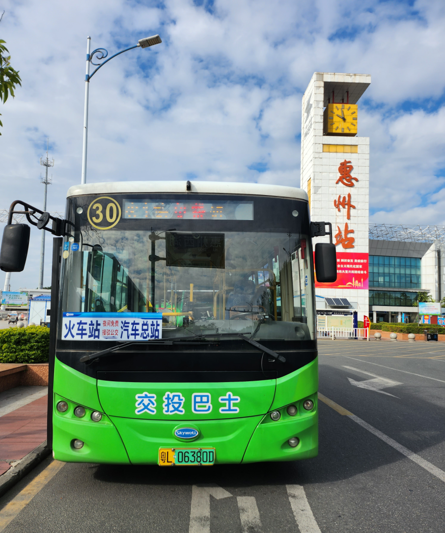 夜間免費公交線路起訖點為火車站至市汽車總站。線路走向為火車站出站口,沿惠州大道、三新南路、文華一路、云山西路、惠州大橋、環(huán)城西路、鵝嶺北路、鵝嶺南路行駛至市汽車總站,沿途按公交站點?。