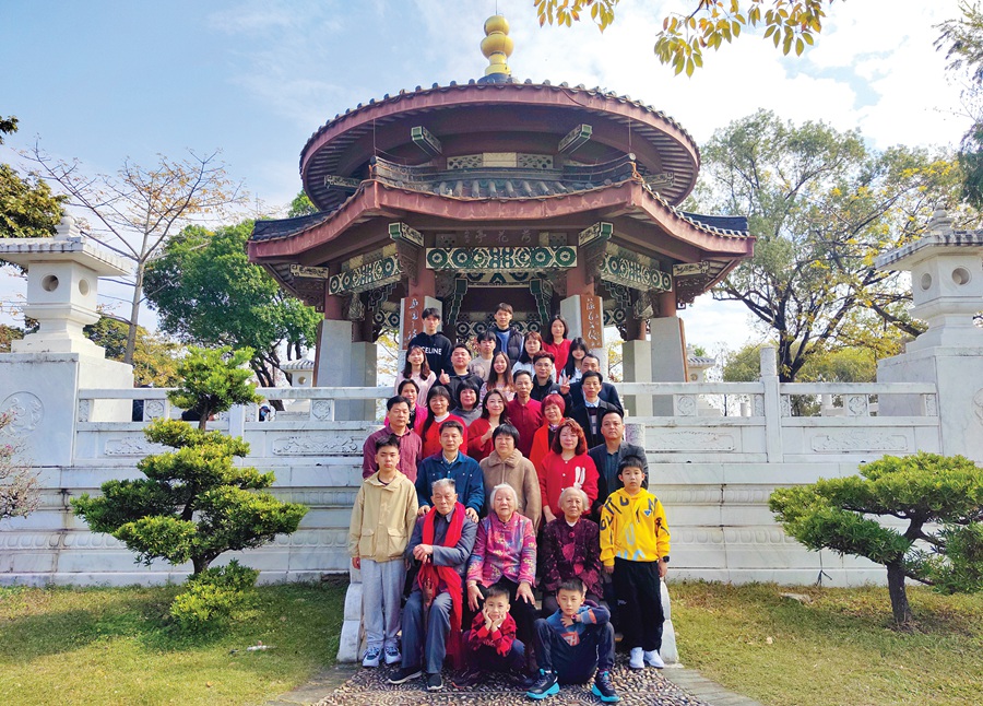 昨日上午10時20分,在豐渚園荷花亭前,惠州日報記者朱金贊為曾家30人歡歡喜喜拍了兩組全家福,每個人都笑得特別燦爛!拔覀冞有一位寶寶在媽媽的肚子里,算上就五代同堂了!”當然,也有點小遺憾,有個姑娘在保健院上班,因為大年初一值班缺席了,大家拍照前一直在商量是不是給她留個位置“P上去”。