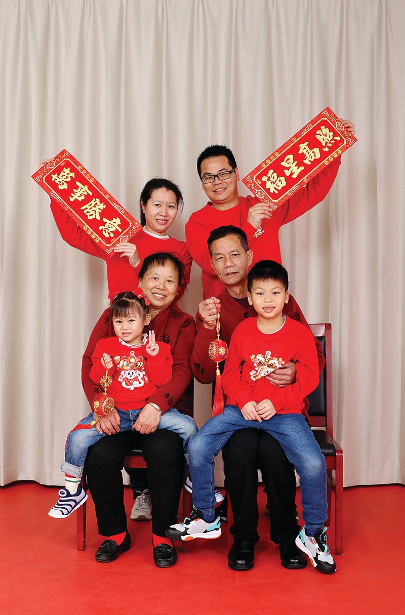 “來,大家看鏡頭,笑一個……”在各個拍攝點,惠州東江圖片社專業(yè)拍攝團隊及惠州日報社采訪部攝影記者認真捕捉每個人幸福洋溢的笑容。無論是幾代同堂的大家庭,還是一家?guī)卓诘臏剀靶〖彝,每個人都帶著愛與期待奔赴這場新年儀式感滿滿的活動,人人都穿上了精心準備的服飾,為這個春節(jié)增添了濃濃的年味和暖暖的溫情。