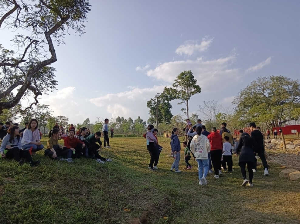 走到公園主干道盡頭,有惠州市金源農(nóng)產(chǎn)品有限公司的農(nóng)家樂、游樂場(chǎng)、民宿。游人孫女士大年初三從東莞長(zhǎng)安鎮(zhèn)驅(qū)車前來游玩。她說:“過年前兩天走親訪友拜年聚餐,趁著假期還有幾天,就來周邊鄉(xiāng)村走走!苯(jīng)朋友介紹,得知這里還不錯(cuò),他們一行20人就自駕來到這里。同行中有個(gè)大姐愛做飯,來到后就借了這里農(nóng)家樂廚房,給大家做家常菜。“換個(gè)方式過年挺好的!睂O女士說,在民宿里住了一晚,初四上午他們?cè)谂笥褞ьI(lǐng)下,到村子農(nóng)田里挖淮山,采青棗、草莓,還采購(gòu)了一只走地雞準(zhǔn)備做午餐。孩子們?cè)趹敉庥螛穲?chǎng),爬上爬下,穿行迷宮,別提多開心。