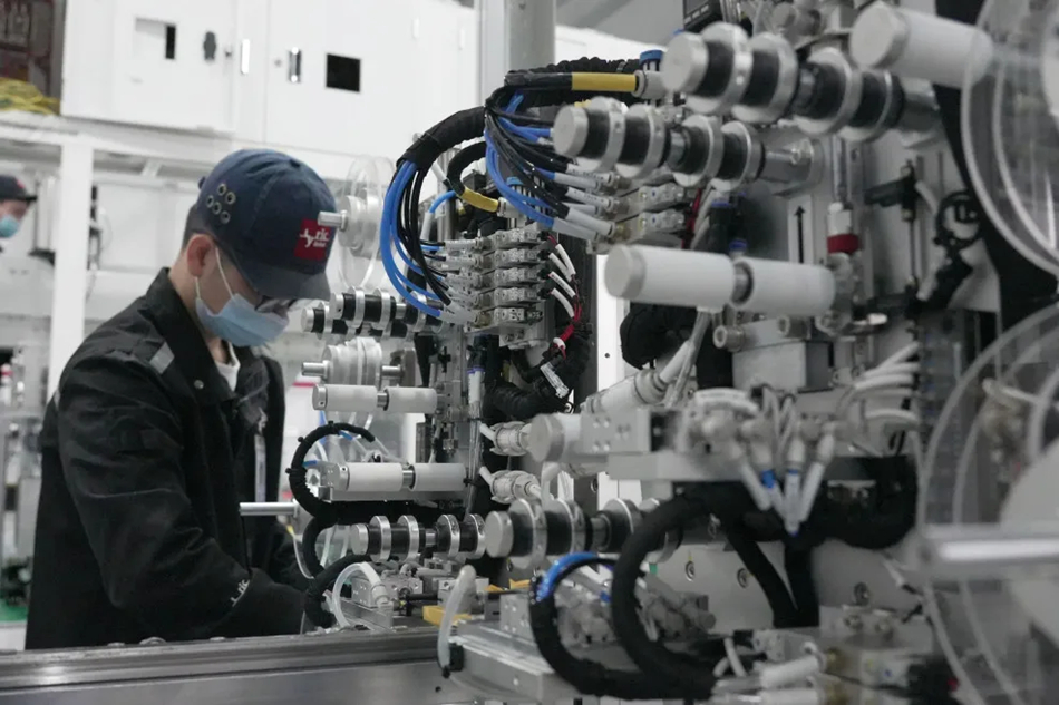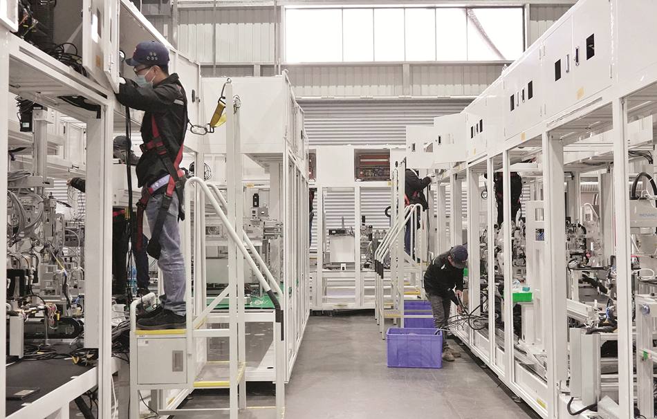 廣東利元亨智能裝備股份有限公司動力電池裝備車間,工人一絲不茍生產。
