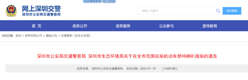 深圳全市范圍機(jī)動車禁鳴喇叭