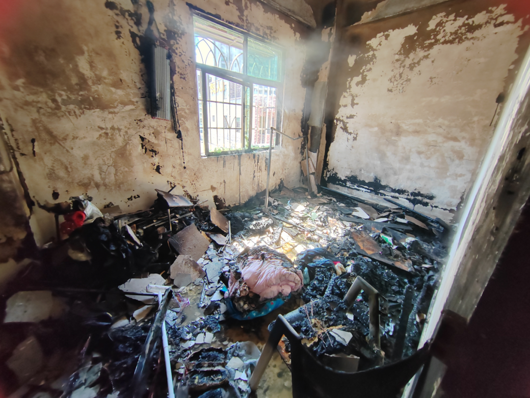 大火燒毀房間內(nèi)床棉被等易燃物品,所幸未造成人員傷亡。