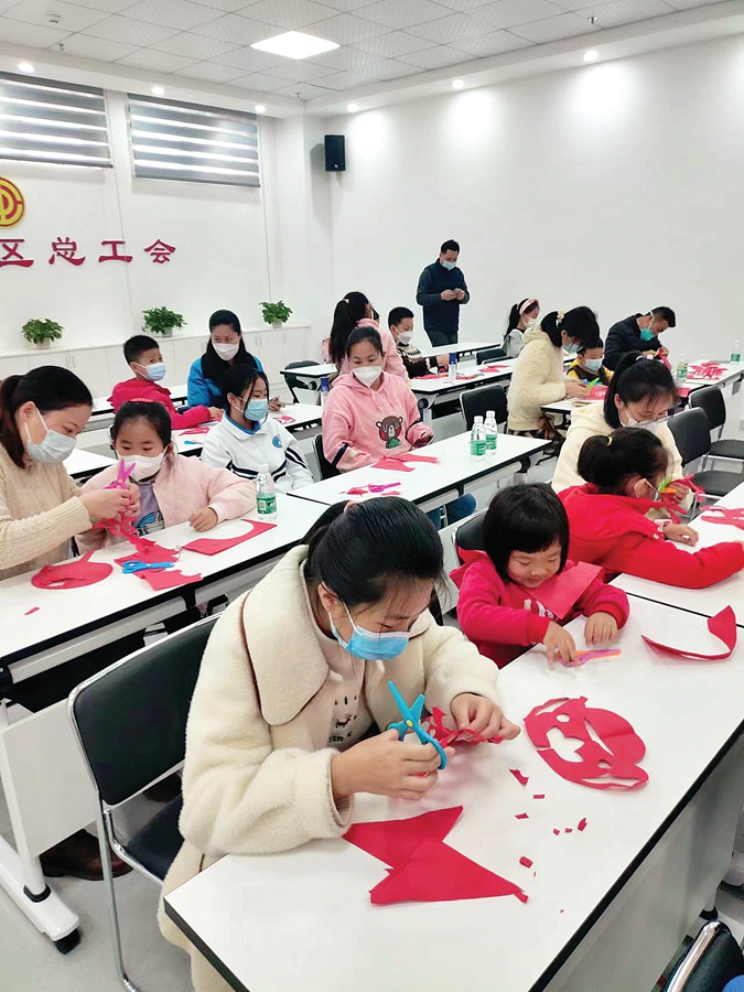 大亞灣區(qū)總工會(huì)在職工服務(wù)中心舉辦了“凝心聚力揚(yáng)新帆·年味送!ぁ恪被顒(dòng)。這是其中的“剪紙窗花賀新年”職工親子剪紙活動(dòng)現(xiàn)場(chǎng)。