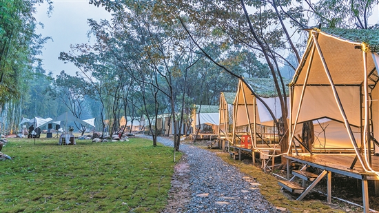 每至周末,田小野露營基地人流涌動。這里依山傍水,谷深林密,溪流涓涓。白天,游客們徜徉在山水間,擁抱大自然。夜幕降臨,篝火晚會等活動熱鬧非凡,讓古老村莊煥發(fā)活力。