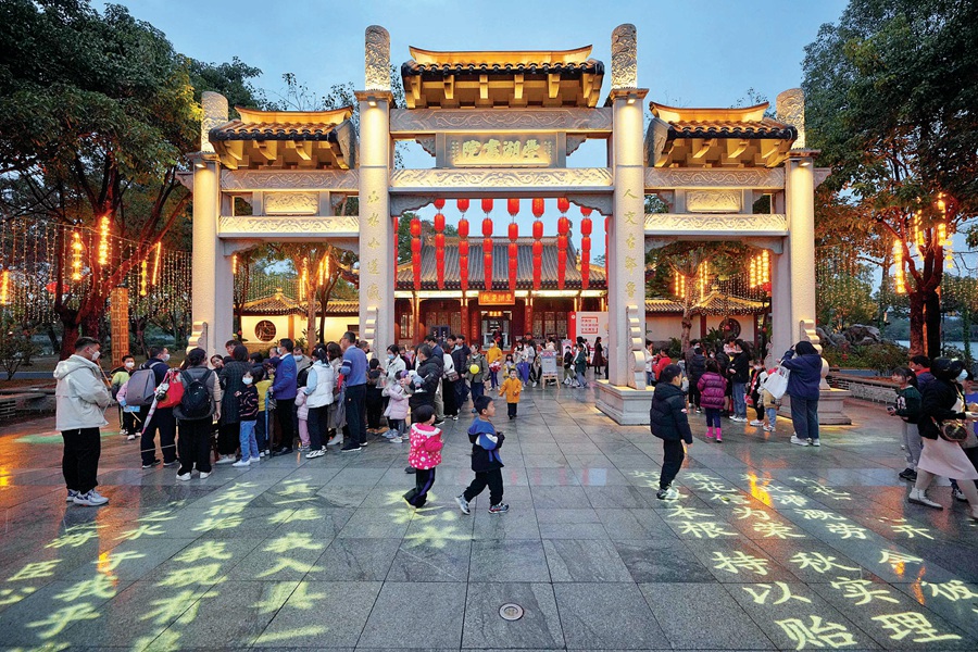 市民、游客感受豐湖書院的古風古韻。