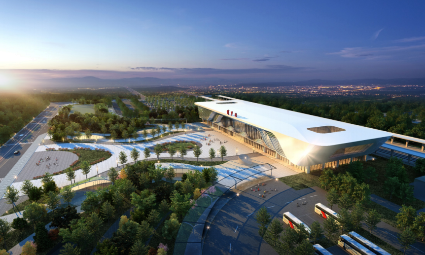惠城南站設(shè)在三棟鎮(zhèn)以北,從效果圖來看,惠城南站站房外觀設(shè)計以疊瓦形式,呈現(xiàn)“重檐疊瓦、鱗紋蕩漾”風(fēng)格,具有惠州傳統(tǒng)建筑意象。