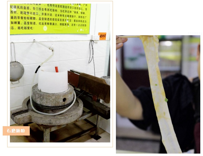 位于龍豐的西關(guān)腸粉,在店內(nèi)擺放了一臺(tái)石磨,每天凌晨三點(diǎn)至早上七點(diǎn)都在研磨著米漿,若是來(lái)得早,還能一睹石磨“開(kāi)工”的狀態(tài)。