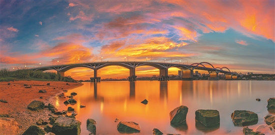 江邊總是人們愛到的地方。閑暇之余,于傍晚移步江邊,于藍(lán)色天穹下,經(jīng)行草間竹間樹間,江風(fēng)撲面,花香襲人,時或郁結(jié)的心,散步時總覺得無限暢快。歌唱家張也演唱的一首《多情東江水》,就抒發(fā)了人們對東江的滿心感激。江河的景色,總能陶冶人的性情,拓展人的胸襟。
