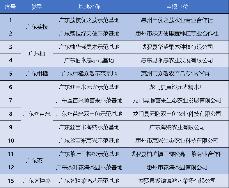 惠州13家基地入選 “粵字號(hào)”農(nóng)業(yè)品牌示范名單。