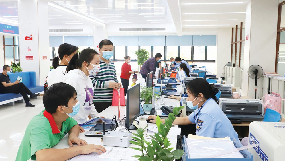 市民在博羅縣石灣鎮(zhèn)便民服務(wù)中心辦理業(yè)務(wù);葜萑?qǐng)?bào)記者鐘暢新 攝