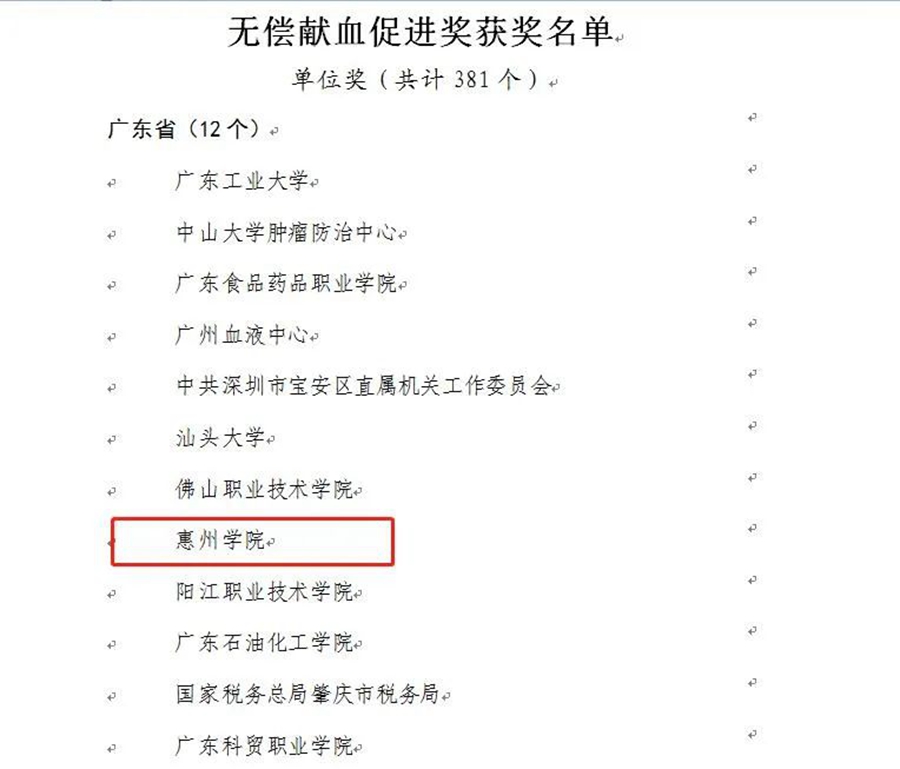 惠州市共有20人獲得2020-2021年度無償獻血志愿服務獎(終身榮譽獎、五星級、四星級、三星級、二星級、一星級),其中,終身榮譽獎3名、五星級1名、四星級2名、三星級4名、二星級6名、一星級4名。