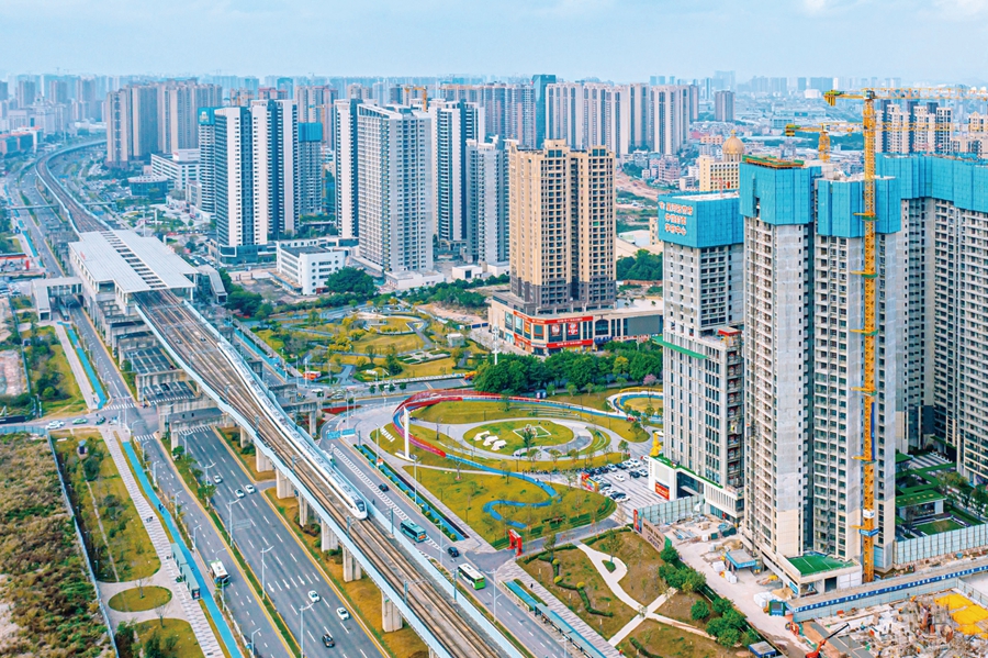 莞惠城軌的列車(chē)不時(shí)在側(cè)經(jīng)過(guò)。