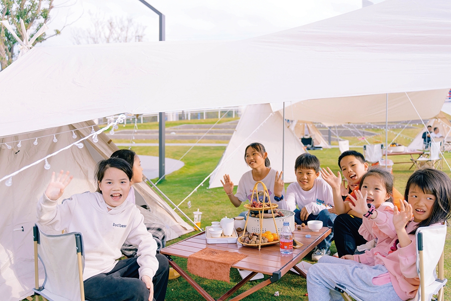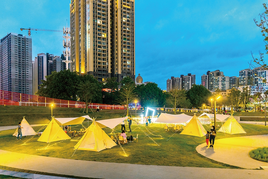 中星公園緊靠仲愷大道,莞惠城軌的列車(chē)不時(shí)在側(cè)經(jīng)過(guò)。市民們?cè)谥行枪珗@設(shè)置的全民健身場(chǎng)地、飄帶浮橋、宇宙花海、兒童運(yùn)動(dòng)天地等場(chǎng)地游玩行走,享受全新的休閑體驗(yàn)。草地上還整齊設(shè)置有帳篷,人們?cè)诖诵蓓奶欤w驗(yàn)時(shí)下流行的圍爐煮茶。