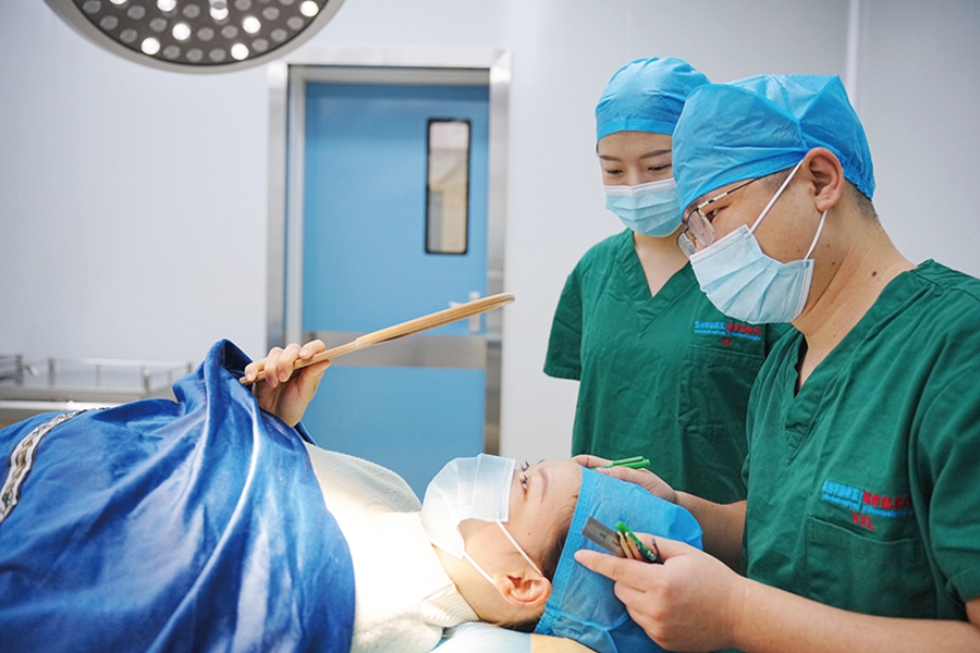醫(yī)美手術(shù)中,王光任醫(yī)生(右一)與患者進(jìn)行前期溝通;葜萑?qǐng)?bào)記者周楠 攝