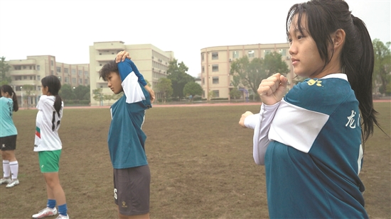 龍門中學(xué)女足隊(duì)訓(xùn)練風(fēng)雨無阻 龍門融媒供圖