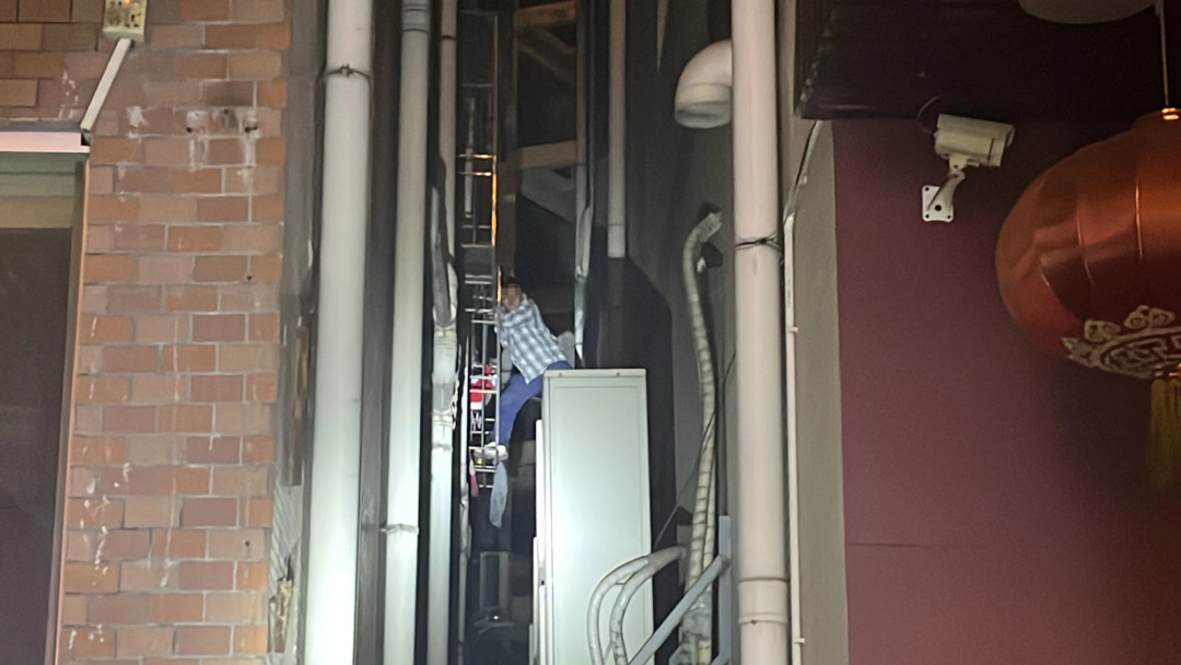 由于窗戶外面裝了防護(hù)欄,男子進(jìn)不來(lái)也下不去,被困在了二樓,隨時(shí)都有掉下去的可能,賴先生立即報(bào)了警。