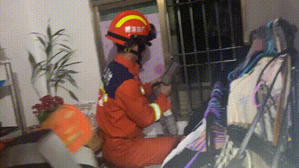 現(xiàn)場(chǎng)消防救援人員不斷提醒男子抓穩(wěn)欄桿,并用全身吊帶和繩索給男子做好保護(hù),防止男子發(fā)生意外墜落。經(jīng)過(guò)緊急救援,男子被成功轉(zhuǎn)移至地面。